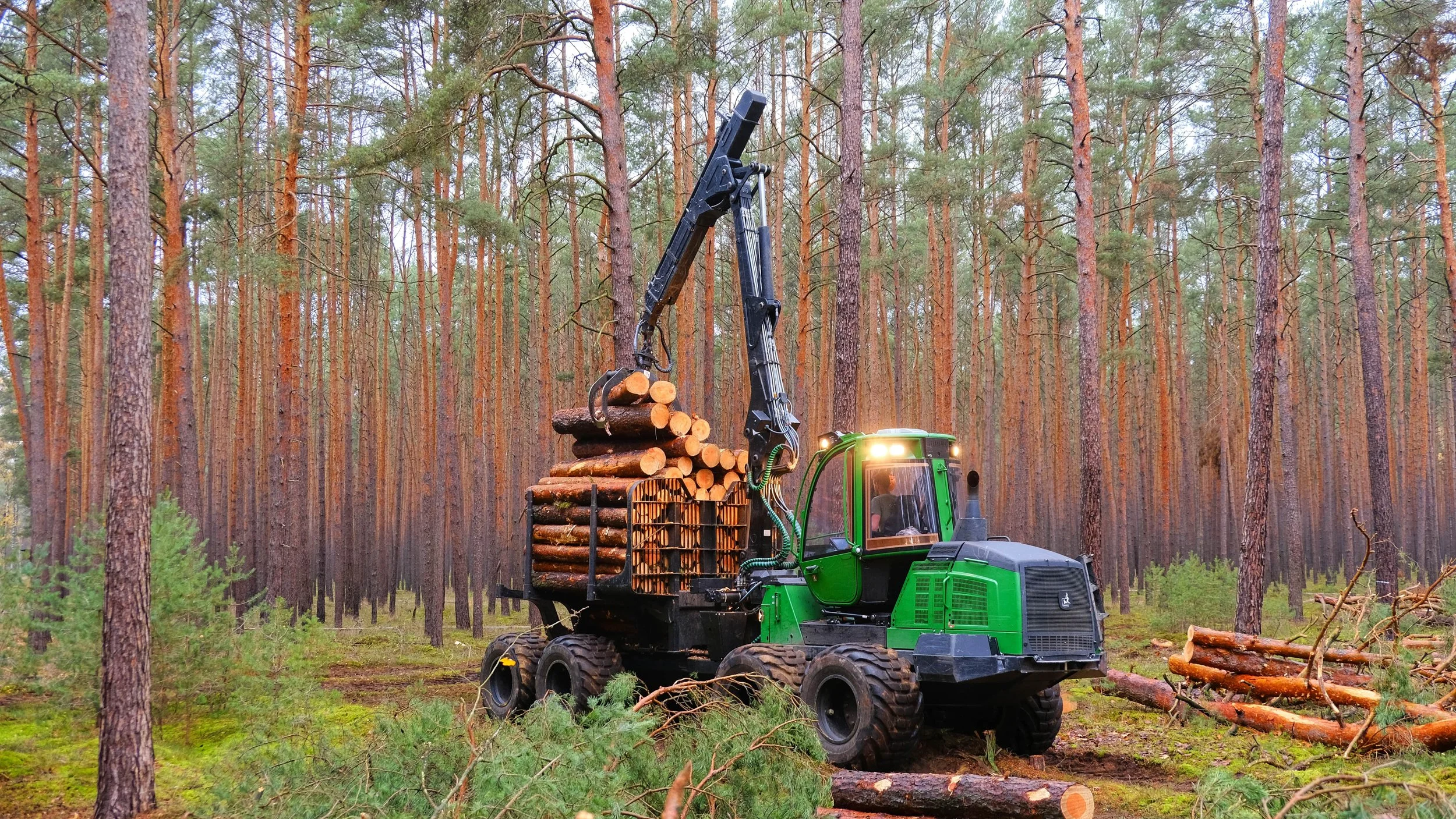 Der Forwarder (Rückezug) sorgt für den sicheren und bodenschonenden Abtransport des geernteten Holzes zur Waldstraße.